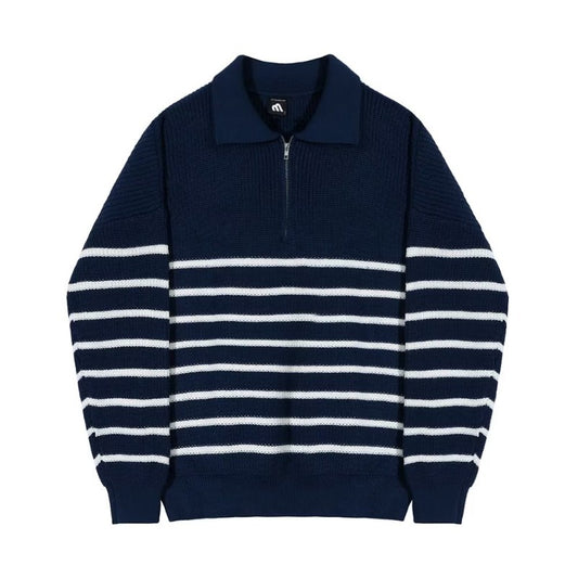 Harbour Stripe Knit Polo – Korean Style Sweater